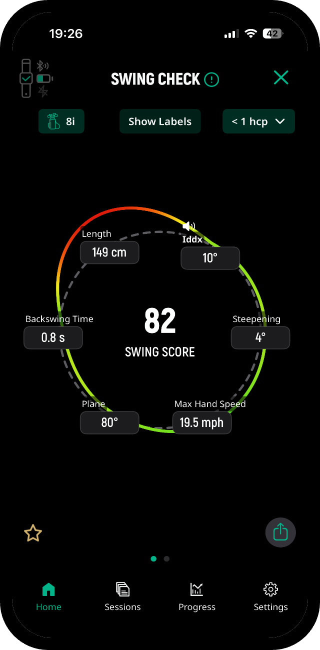 The deWiz Swing Score describes how closely your latest swing matches the swing you have chosen as your benchmark –